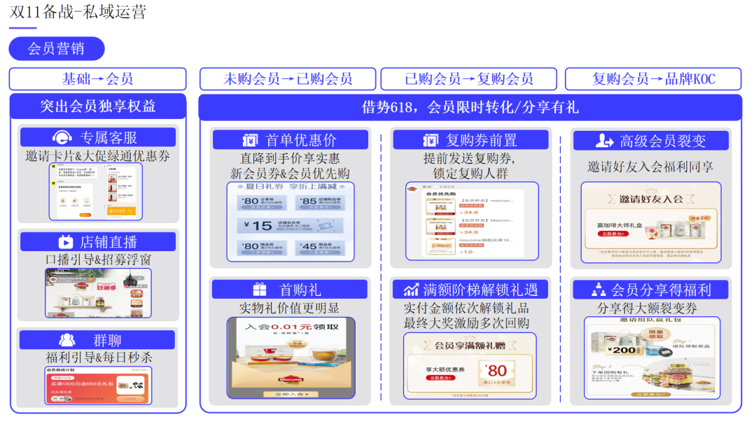 第三,重點主打私域運營,沉淀消費人群資產(chǎn)。全域營銷向來不是一味追求通盤皆好,而是主次渠道有所區(qū)分,鎖定目標消費人群。