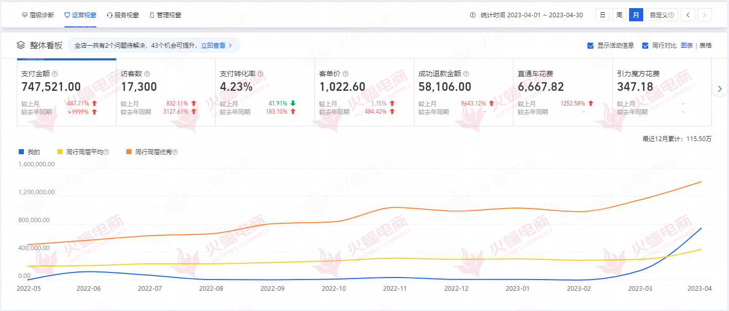 據(jù)了解,武漢火蝠電子商務(wù)有限公司(以下簡(jiǎn)稱“火蝠電商”)就是周生(化名)選擇的代運(yùn)營(yíng)合作伙伴,即本次618店鋪增量的幕后推手。碰巧的是,在6月初,該企業(yè)還憑借著對(duì)美妝賽道的理解和創(chuàng)新能力,一舉斬獲2023CIBE美博會(huì)【顏值經(jīng)濟(jì)品牌運(yùn)營(yíng)官】重量級(jí)認(rèn)證。近9年的電商服務(wù)經(jīng)驗(yàn),以店鋪代運(yùn)營(yíng)、爆品打造等服務(wù)見長(zhǎng)的火蝠電商,正在成為越來越多品牌主的選擇。而其強(qiáng)大的“數(shù)字營(yíng)銷”能力,是周生(化名)選擇合作的理由之一,也是店鋪增長(zhǎng)的關(guān)鍵。