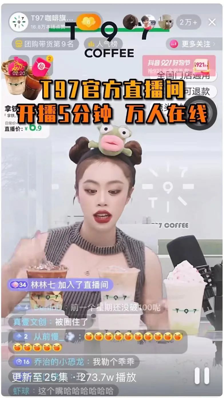 T97咖啡旗艦店女主播用唱Rap的方式賣咖啡,伴隨著魔性的Bgm,直播間流量瘋狂上漲,一躍成為本地生活賽道現(xiàn)象級直播間。
